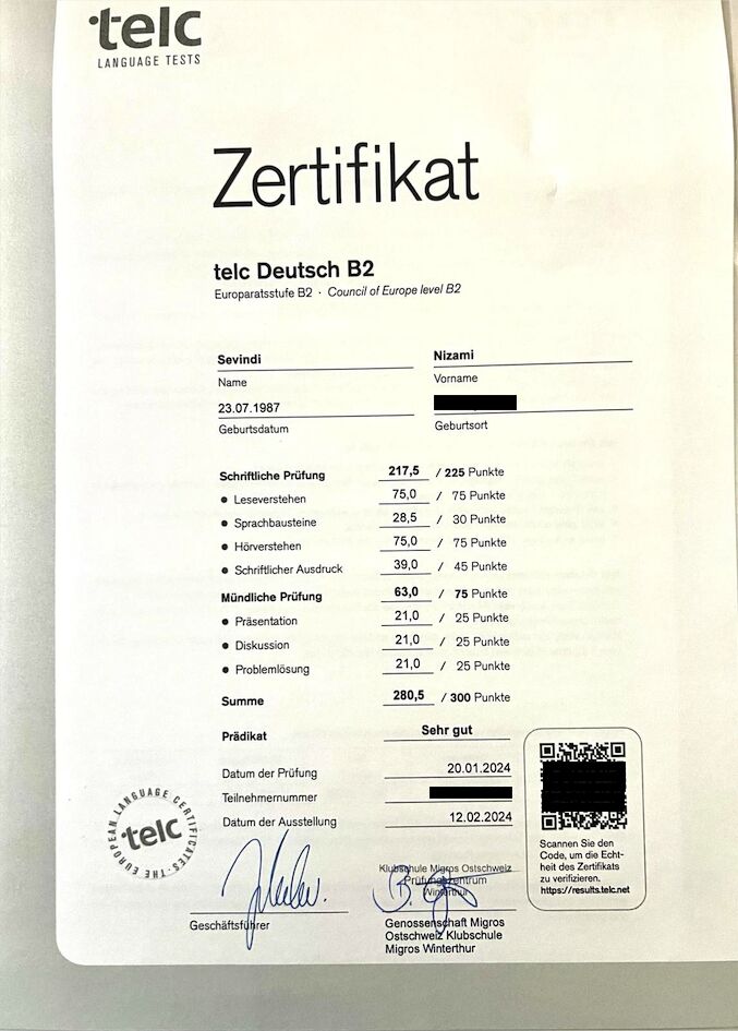 | Issuing Authority | TELC gGmbH (Germany) | Registered within official TELC framework | Verifiable via direct inquiry |